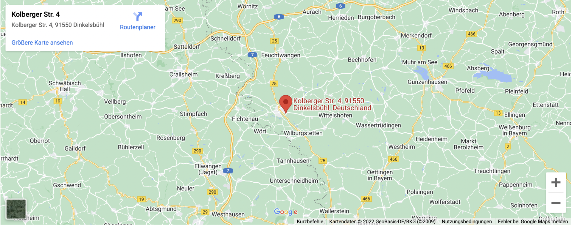 Die Praxis liegt im Osten (Richtung Wassertrüdingen) der Großen Kreisstadt Dinkelsbühl im Gewerbegebiet Ost.